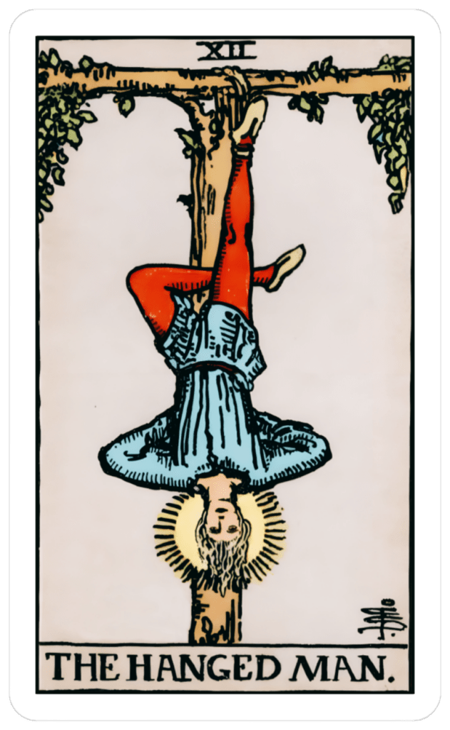 The Hanged Man tarot card represents suspension, letting go, and gaining a fresh perspective through changing one’s viewpoint.