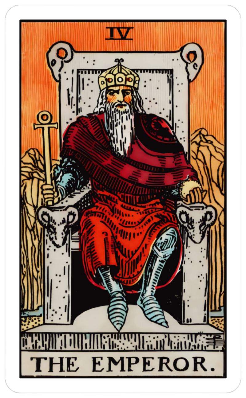 Stability, Protection, Power and Authority. Provides assistance to those in need. A symbol of strength and determination. Can also represent a need for control. Discipline and rational thinking are essential for achieving success. Read more about The Emperor>