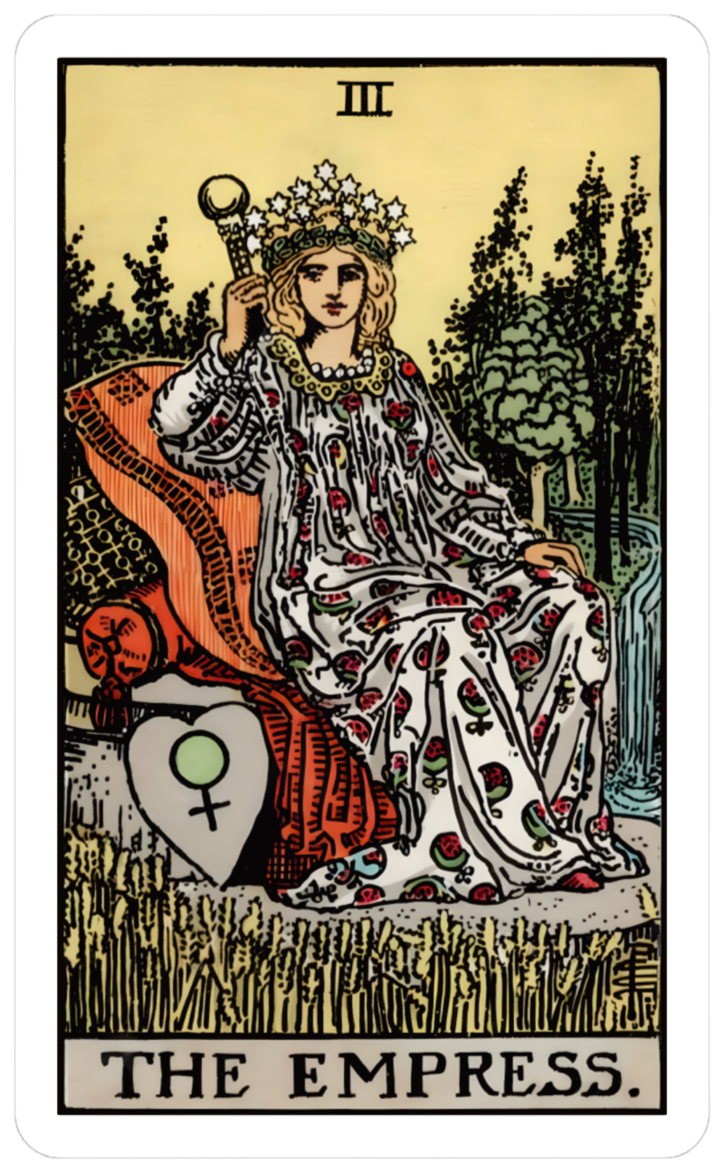 Creativity. Divine Feminine Power. Fertility and growth. A symbol of abundance and connection with nature. The Empress is a nurturing Mother who will support you in achieving your goals. Signals a period of financial expansion and success. The Empress>